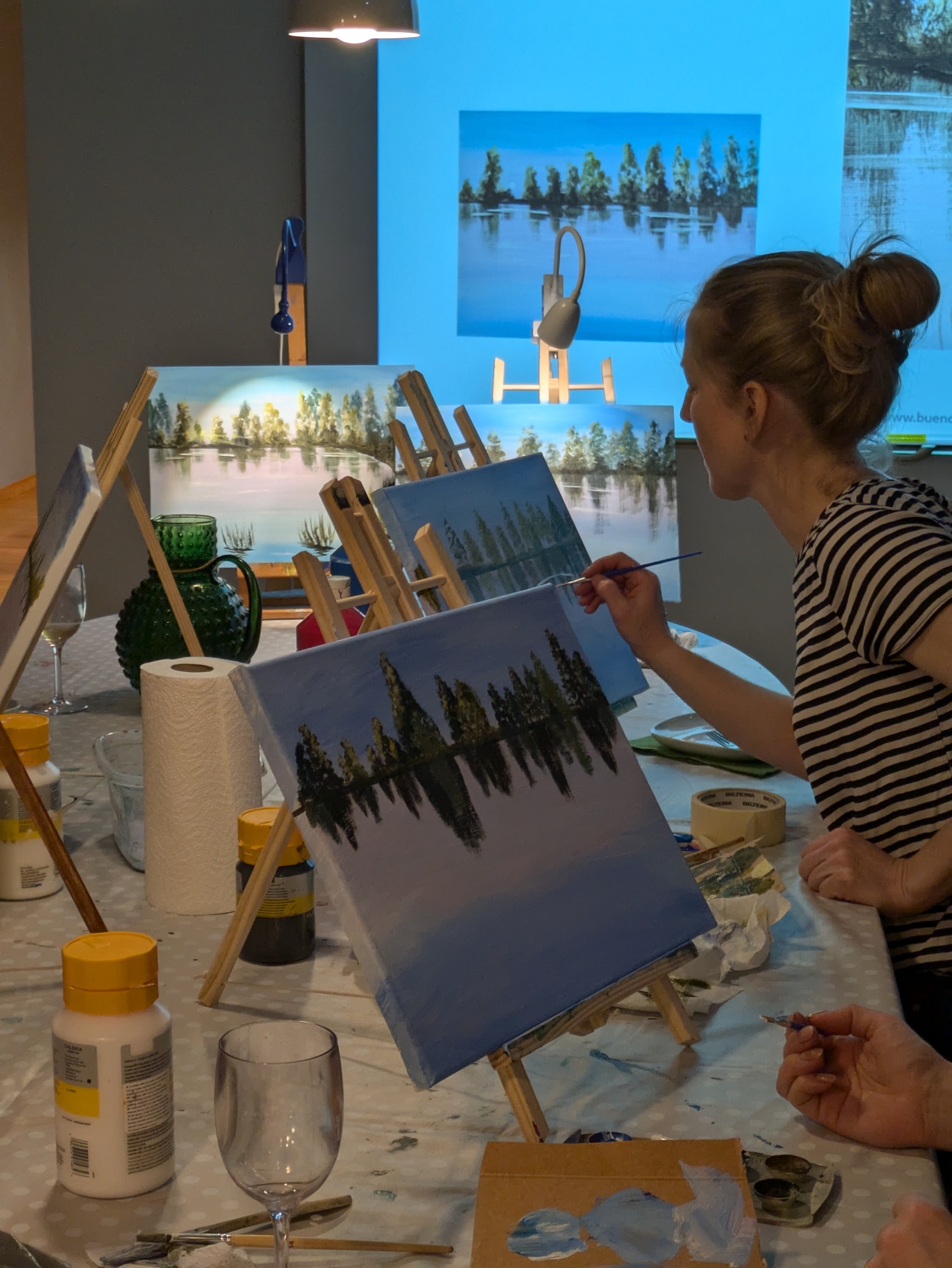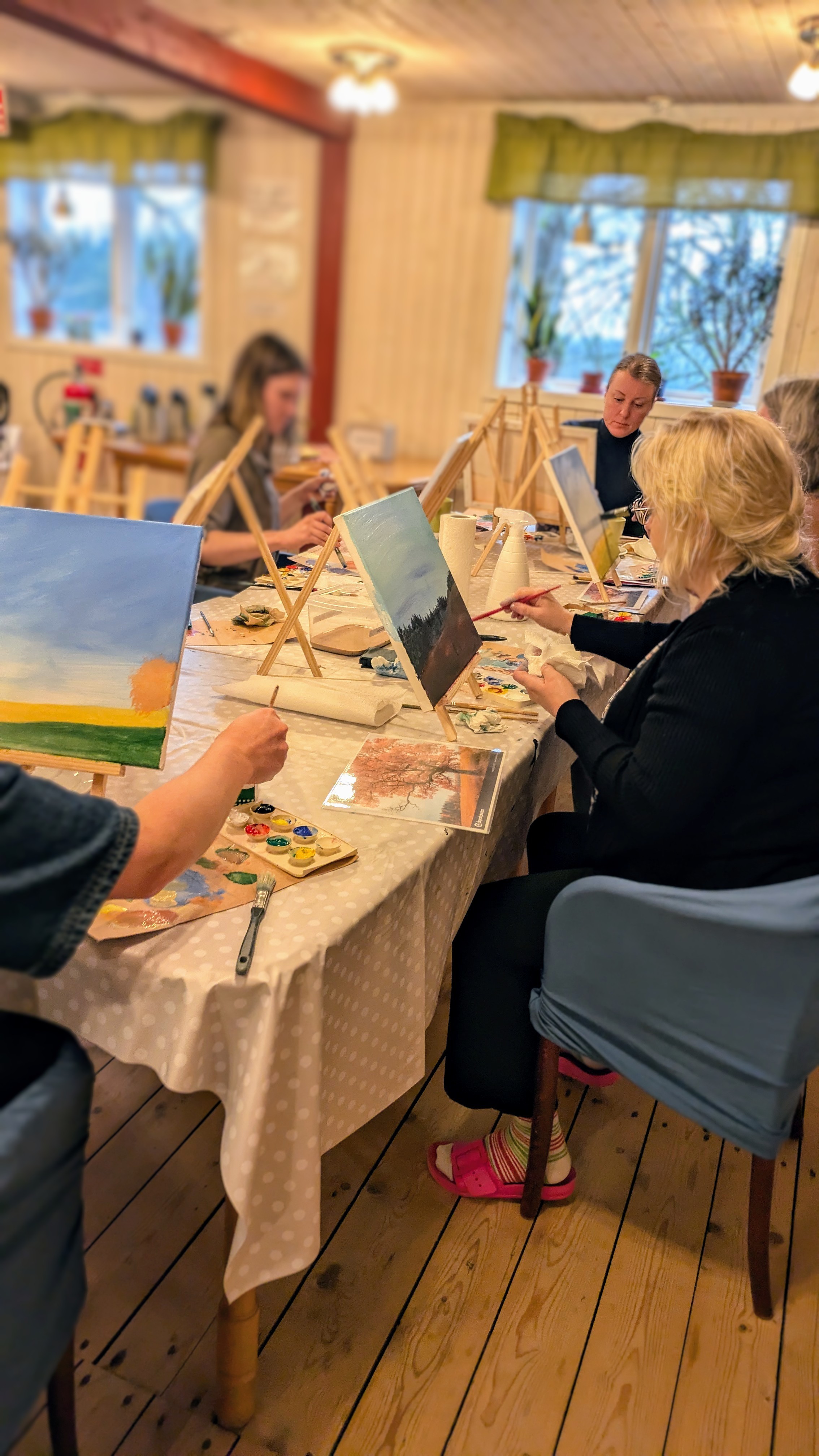 Vi målar samma motiv igen tillsammans med er. En kreativ upplevelse som är både rolig och lätt att hänga med i!
